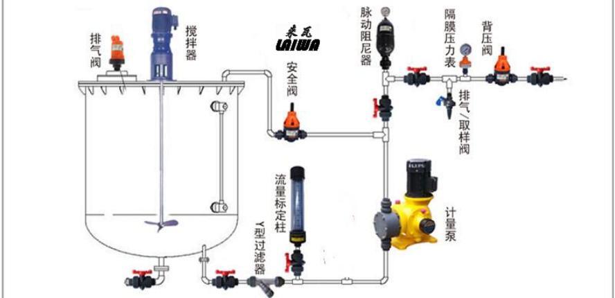隔膜、閥芯由內(nèi)部彈簧壓緊頂住閥座,當系統(tǒng)管路內(nèi)壓力超過預設定的壓力時,隔膜、閥芯被頂起,介質(zhì)泄出至回流管及容器,在現(xiàn)場可通過調(diào)節(jié)螺絲借助管路中的壓力表在0-1.0Mpa范圍內(nèi)設置壓力,泄放壓力一般設置高于系統(tǒng)壓力0.1-0.2Mpa,安全閥調(diào)壓不允許超過計量泵的最壓力,安裝一般盡量靠近泵的出口處,泵與安全閥之間不應有任何閥門。保護泵的安全和系統(tǒng)的正常運行。