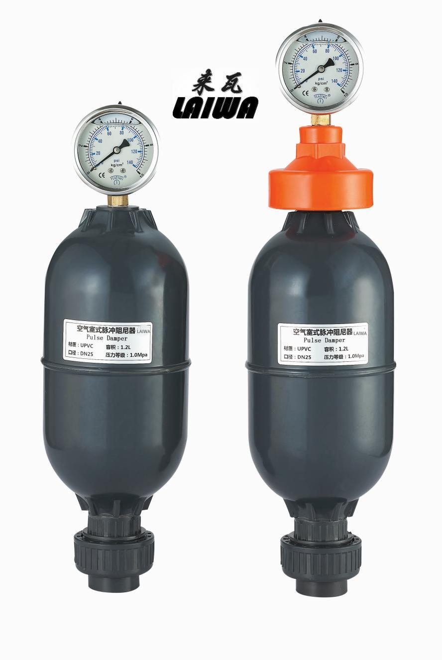 脈沖阻尼器又名脈動緩沖器、脈動阻尼器,是消除管路脈動的常用元件,是計量泵必須配備的附件。脈沖阻尼器能夠平滑由柱塞泵、隔膜泵等容積泵引起的管路脈動及消除系統(tǒng)的水錘現(xiàn)象,它由耐腐蝕的隔膜將氣體與管路中的液體隔離,通過氣室容積的變化平滑管路脈動,對受壓液體的能量進行儲存和釋放。該系列產(chǎn)品廣泛用于化工、水處理、食品飲料、電力、造紙、紡織及流體機械等行業(yè)。