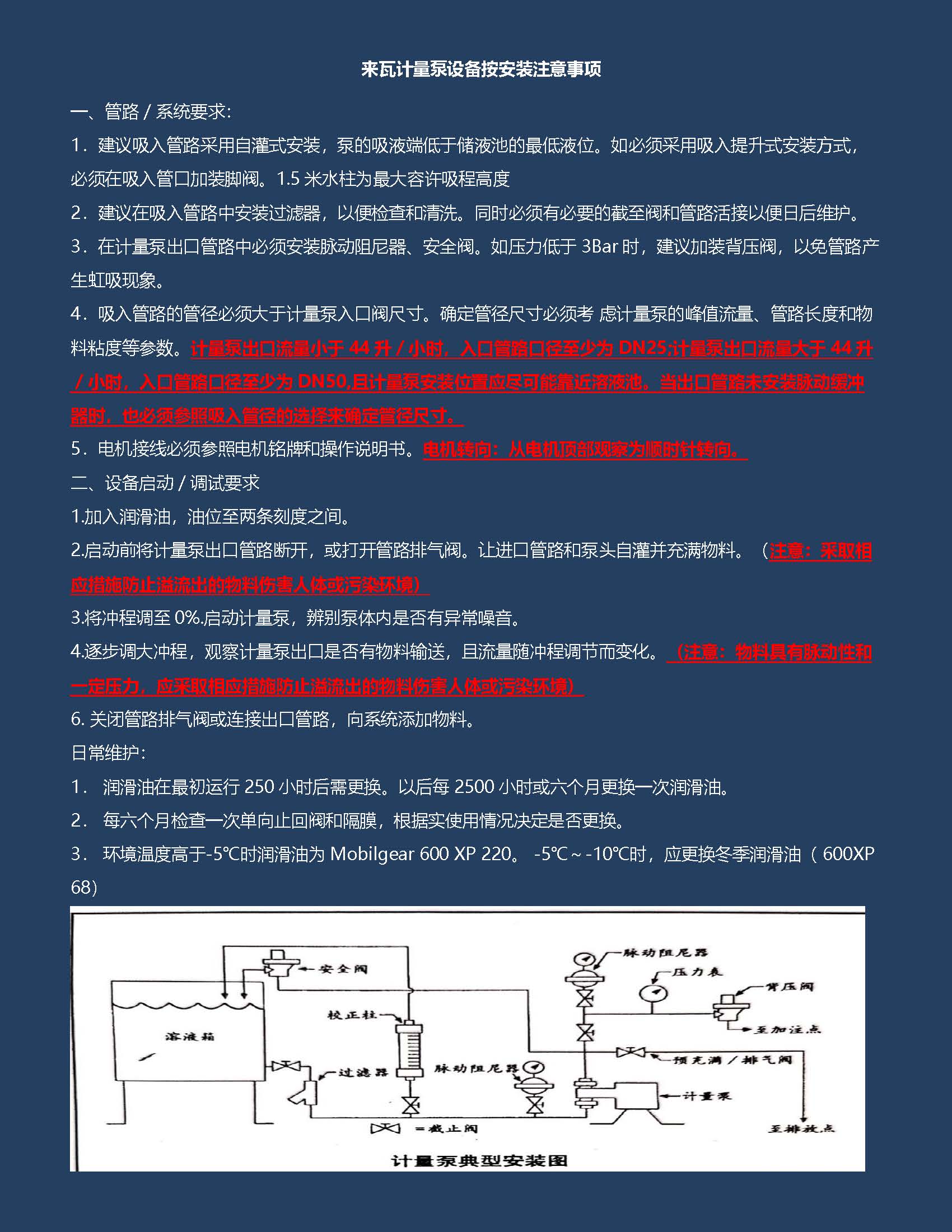 來瓦計量泵設(shè)備按安裝注意事項
